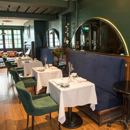 Inviting fireside dining room with pub-style bar serves deliciously on-trend small plates & fantastic cocktailsSafe
