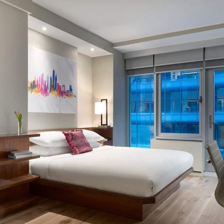 Die Zimmer und Suiten verfügen über einen privaten Balkon mit Blick auf die 46th StreetHaustierfreundlich