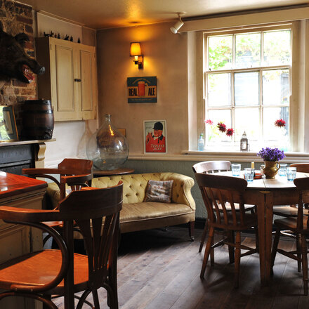 Once frequented by the household cavalry while escorting gold bullion from London to the Navy in Portsmouth, this 300-year old inn sits on a hillside in the picturesque village of Tillington opposite All Hallows Church - a landmark worth mentioning due to its unusual Scots crown steeple and painted by both Constable and Turner. The charmingly quirky and atmospheric pub, low beamed and set out on several levels has the feel of an antique shop, decorated with vintage finds, fresh and dried flowers, mismatched candlelit tables, and chalkboard menus offering seasonal homegrown, foraged or locally sourced ingredients. Outside there’s a delightful garden with sheepskin-covered benches, straw bale seating, bunting, potted plants and a hammock. The cottagey-style rooms are equally appealing and informal with painted furniture and lovely surprises such as a rocking chair, floral eiderdown, homemade biscuits, poesies in jars and locally made lotions and potions. Utterly charming.
