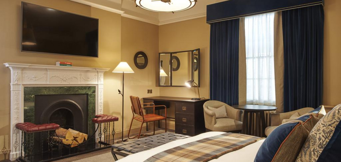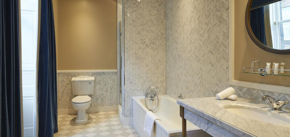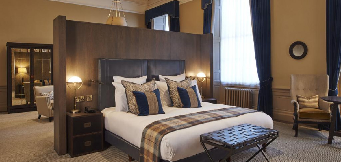Das Kimpton Charlotte Square ist aus einer Reihe eleganter georgianischer Stadthäuser entstanden und strahlt Klasse aus. Eine Lobby voller Antiquitäten, Kuriositäten und schrulliger zeitgenössischer Kunst gibt den Ton zwischen Tradition und Moderne an und führt in einen oasenartigen Innenhof mit Glaskuppel, der an viktorianische Palmenhäuser erinnert (und an sonnigen Tagen fast unangenehm warm sein kann). Die 13 Zimmer im 'Wee Hoose'-Flügel sind in Grau-, Creme- und Karamelltönen gehalten und mit Samt- und Kaschmirdecken sowie Lederpolstern ausgestattet. Zu den Annehmlichkeiten gehören eine eigene Sammlung klassischer Vinyl-LPs, Yogamatten, schottische Leckereien und Spitzenkaffee für die Kaffeemaschine im Zimmer. Die gleichen Farben und Leckereien finden sich auch in den anderen Zimmern und Suiten des Kimpton - und wir mögen den Farbtupfer, den die knallroten Nachttischtelefone setzen, die trotz ihres Retro-Looks Alexa in den Schatten stellen, wenn es darum geht, Ihre Bedürfnisse auf Knopfdruck zu erfüllen. Zurück zu den öffentlichen Bereichen: Das Frühstück wird im Wintergarten-ähnlichen Garten serviert, der auch als ganztägige Brasserie dient und Kaffee, Cocktails, Snacks und Nachmittagstee anbietet. Das BABA, das Hauptrestaurant des Hotels, serviert ein mediterran-fusionistisches Menü, während die clubbige Map Room Bar ein gemütlicher Ort für Drinks nach dem Abendessen ist. Der Fitnessraum und das Spa (versteckt unter dem "Wee Hoose") bieten einen Pool, eine Sauna und einen voll ausgestatteten Fitnessraum. All das und die Sehenswürdigkeiten, Einkaufsmöglichkeiten und das Nachtleben von Edinburgh vor der Haustür - was braucht man mehr?