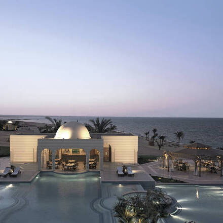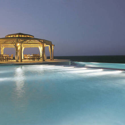 “A Five Star hotel with its own private beach and coral reef to dive from. All suites in cream with all the mod cons and balconies. Italian, Indian, and Oriental cuisines, a wellness spa, and huge infinity pools that stretch onto white sand. Very romantic, yet family friendly too. ”