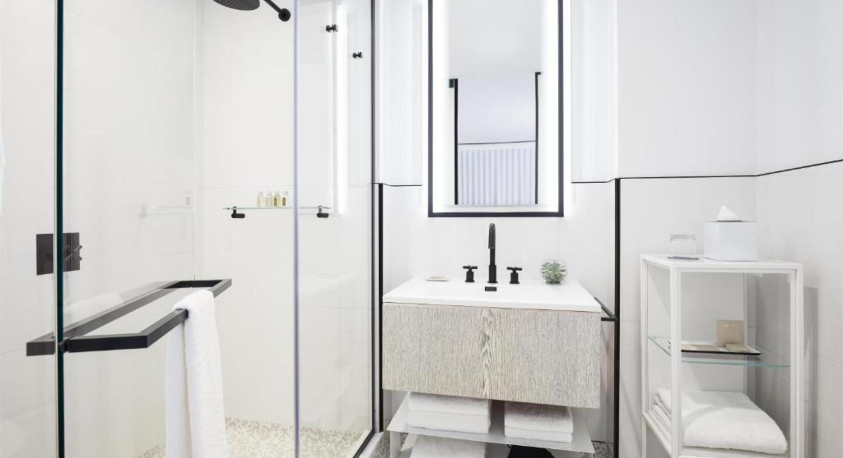 Bieten Sie andere Mahlzeiten an? Und können Sie gute lokale Restaurants empfehlen? The William Vale beherbergt drei unterschiedliche kulinarische Orte der NoHo Hospitality Group von James Beard Award-Gewinner Chef Andrew Carmellini: das ganztägige Bar & Café Little Fino, das südlich-italienische Restaurant Leuca und die Westlight Dachbar.