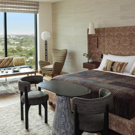 Expect hip, modern style — courtesy of dark wood and stone materials coupled with vibrant red and blue textiles. The W also makes a distinct nod to Austin and the city's creative scene through its memorabilia, funky artwork and photographs of historic local music legends.